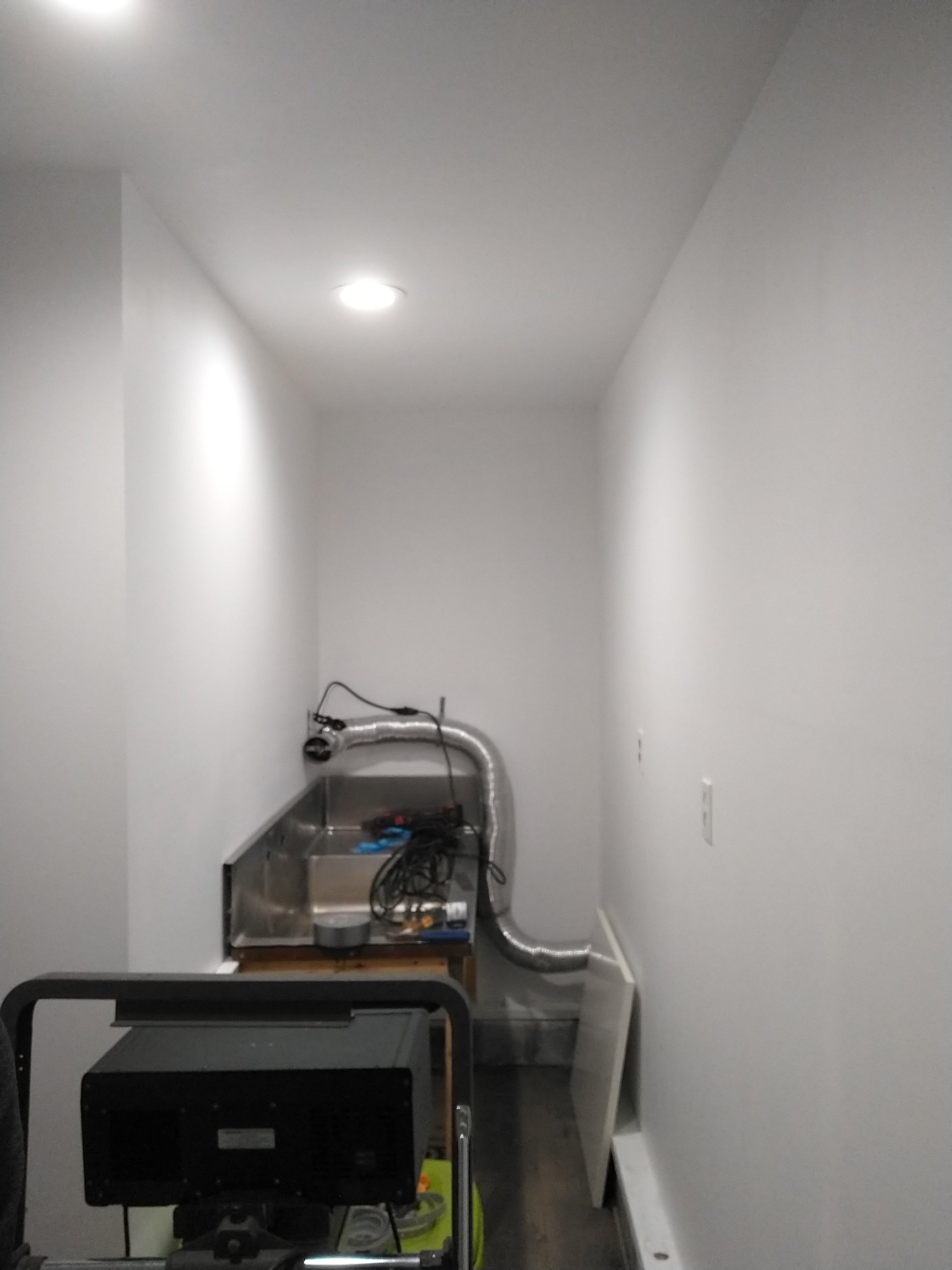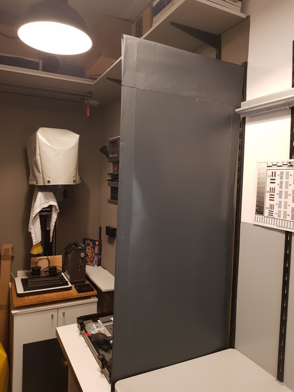 - extra shelves here and there, warm air outlet for AC, walls painted in the enlarger area