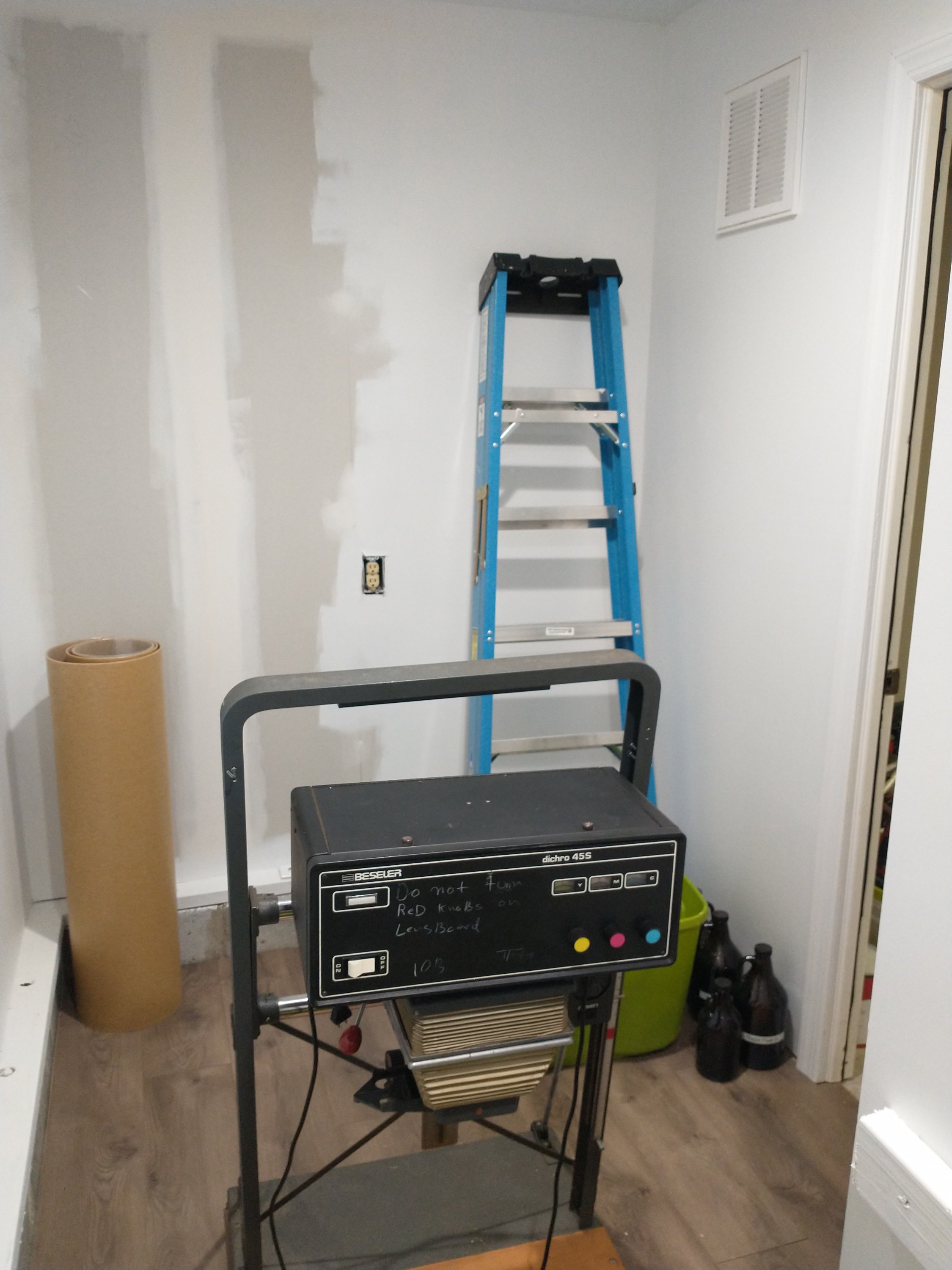 Ive been working out of my unfinished basement for a few years, not ideal, dusty, very low ceilings, and really didnt work the second I decided to venture into 4x5. I would have to print on my knees to fit any 4x5 enlarger, Beseler 23 squeezed in there with a drop table.