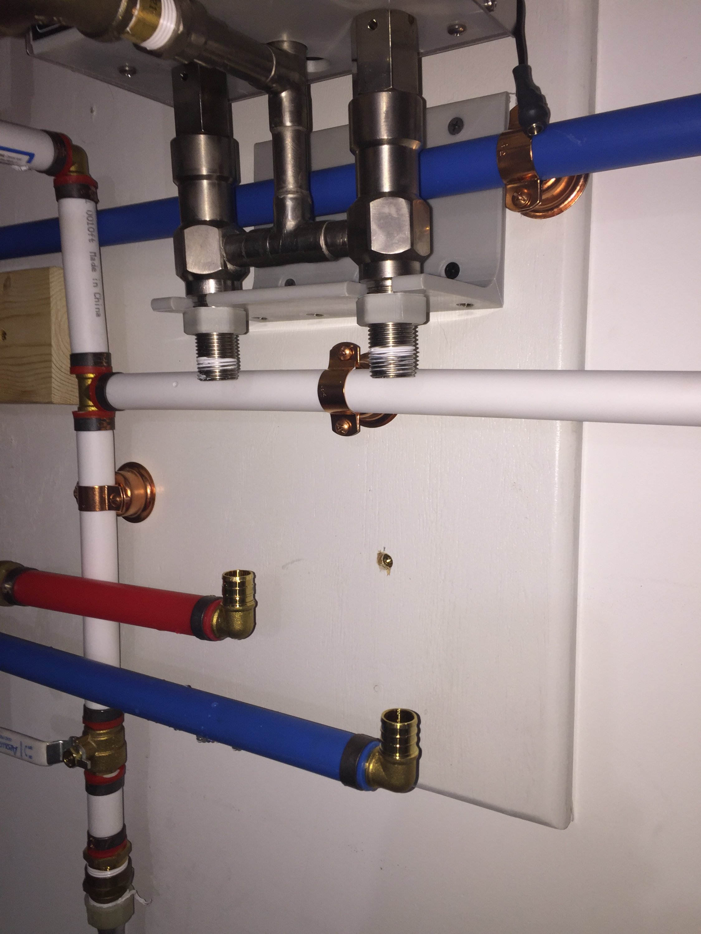 Taking far too long, but at least I have a temporary sink, running water and a functional drain in the room. I had several adventures with faulty check valves, burst connectors and other plumbing fun. Thought I was nuts putting so many shut off valves in the mix, but am glad I did because the PVC connectors on my mixing valve had cracked during installation unbeknownst to me and I was able to isolate it and shut it off instantly when the water started flying.