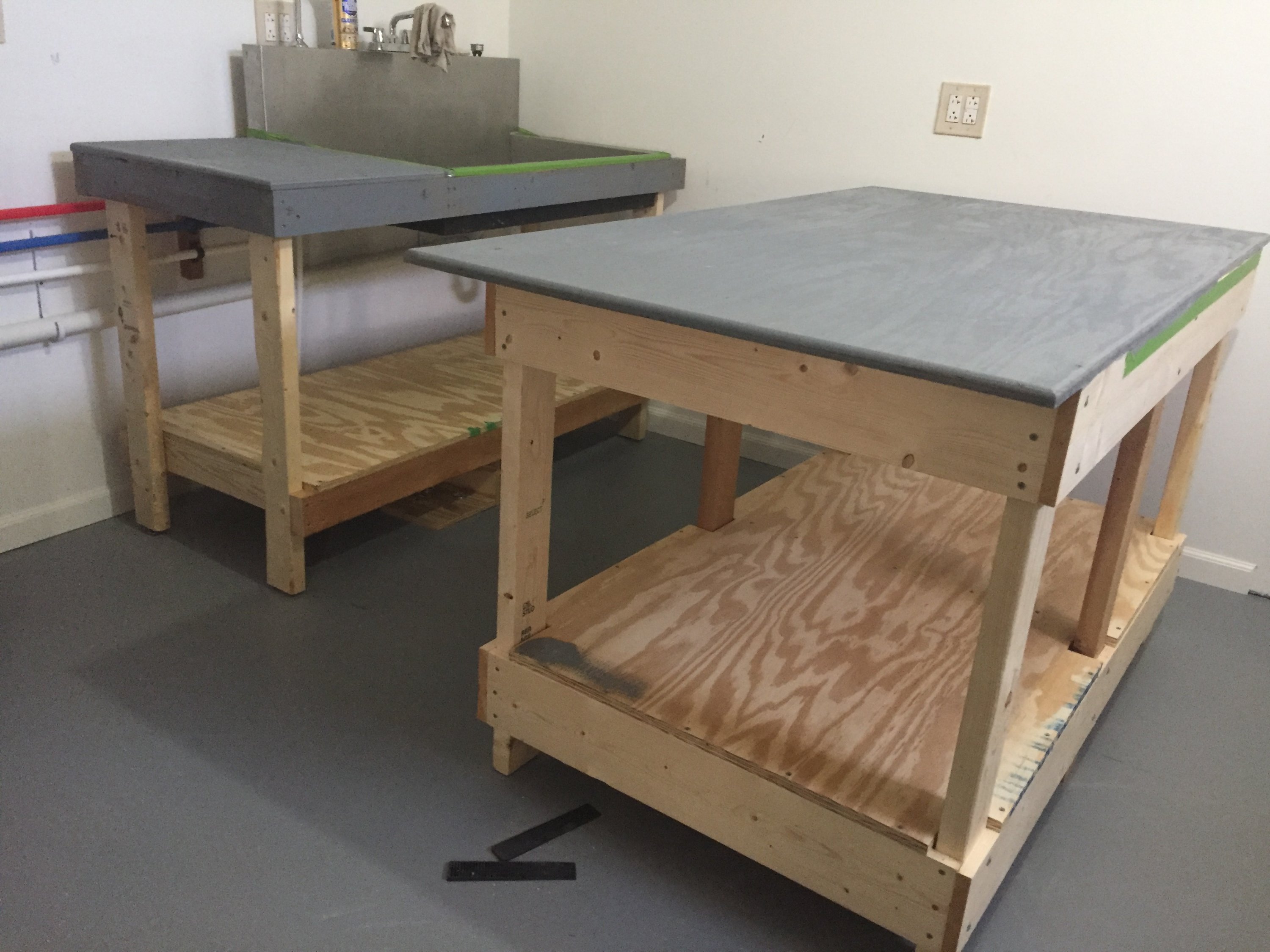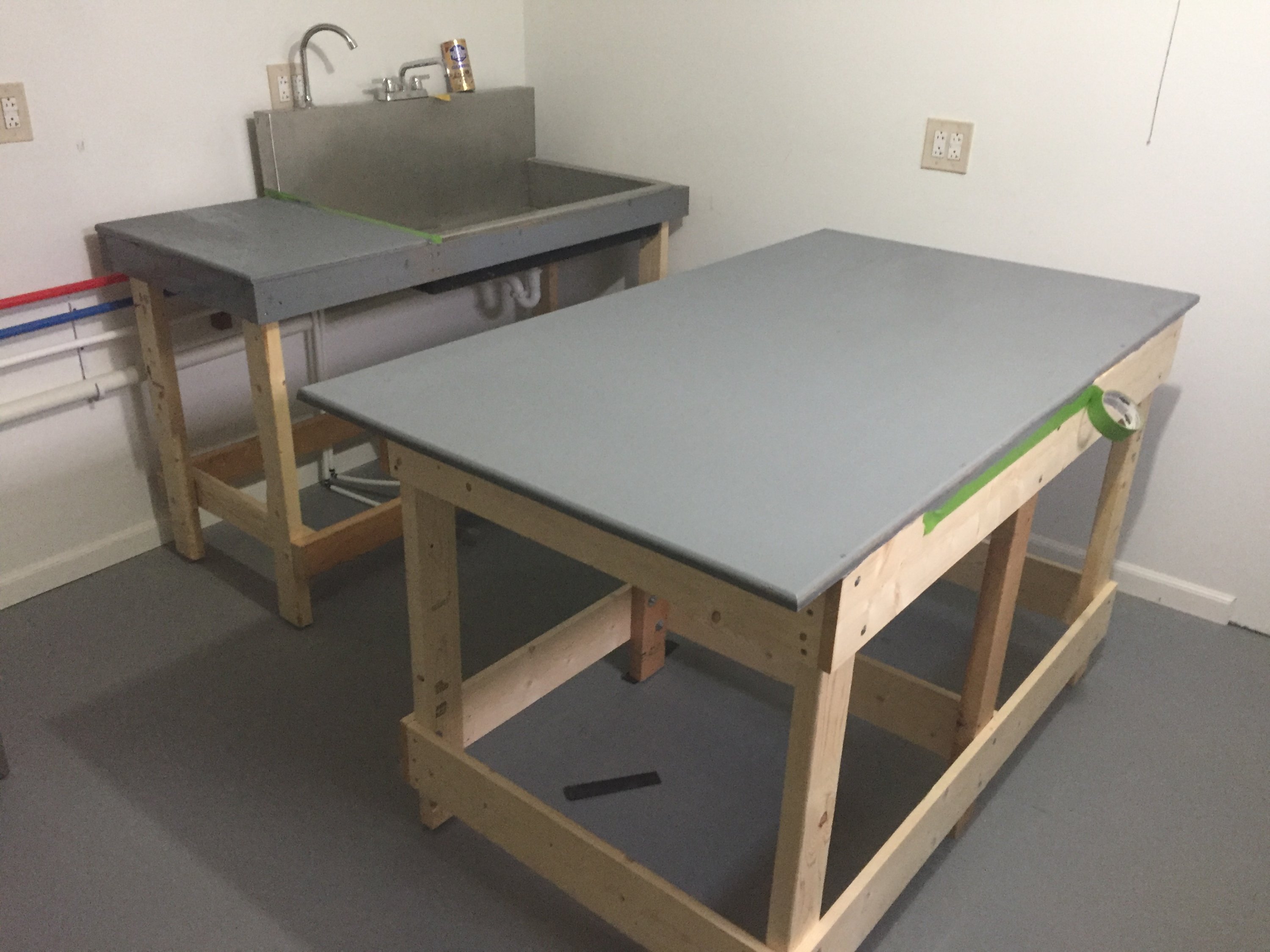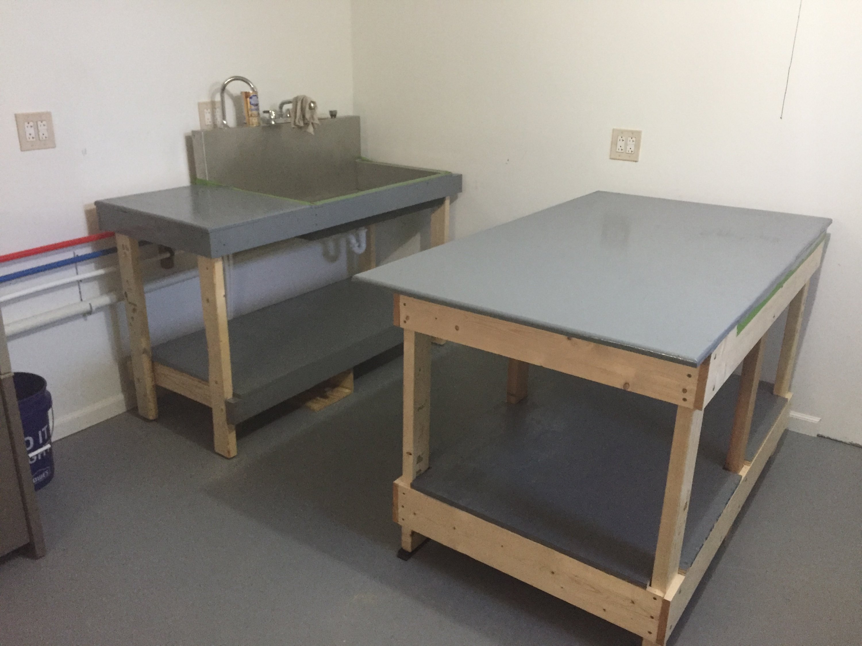 More progress. Gave up on making it "nice", going for functional. Got my enlarging bench constructed and the first coat of paint on it and the sink top. Waiting on the return of my Intellfaucet from Hass. Had to send it back twice for leaks; hope they fix it this time. Shouldn't happen with a new valve...