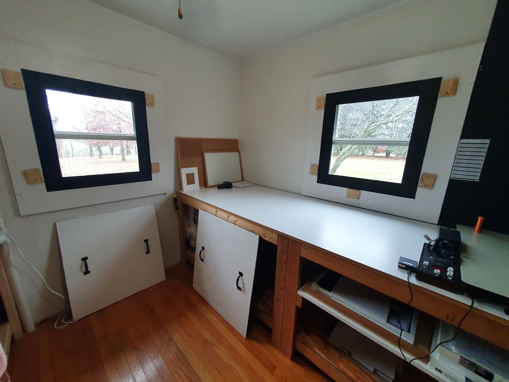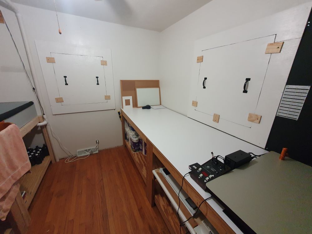 Well, my 11x14 easel did not arrive yesterday like it was supposed to, but my Darkroom Automation F-Stop timer with foot switch did arrive on Friday. Here is my darkroom after rebuilding the sink and remaking the window portal covers much as it appeared 10 or so years ago when I thought I was done with it....it is in a small 10x10 spare bedroom in my old house. It is meagerly equipped right now but totally at a level of functionality (minus the easel of course); I left myself short of some 8x10 trays and amber colored 32 ounce glass bottles when ordering, I really need a couple more of each but can do for now. I am familiar with TMX 100 and will try to standardize my processes with it in XTOL (unreplenished for the time being but will look into that in due time). I will get back into the swing of things as it relates to printing with 8x10 RC paper from Iford but will move back into FB, also in due time. Items that I sold years ago but will be looking to acquire again in the future will be a densitometer and a step wedge.......I'v never had a dry mount press but would like to get a decent used one. EDIT, will also be looking to put down some protection for the hardwood floor.