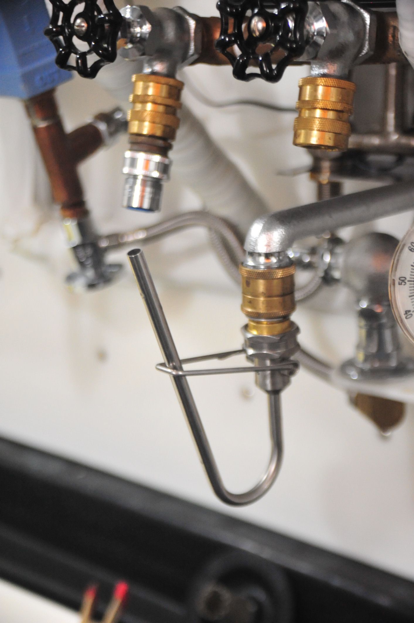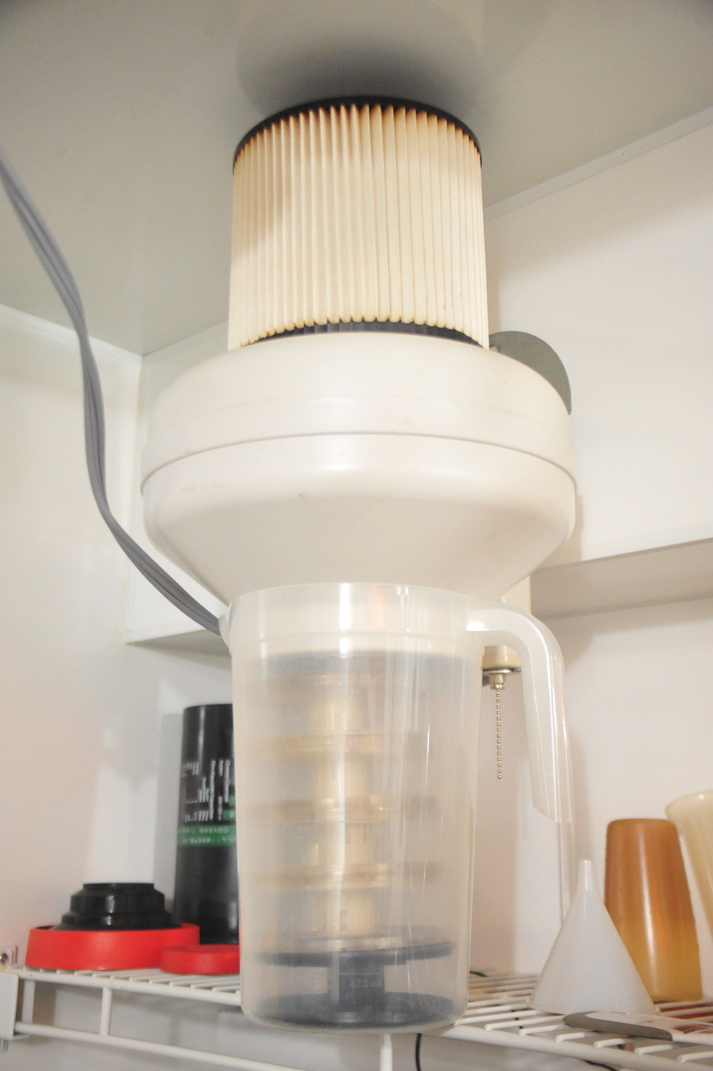 Well, I basically finished this new darkroom (my 6th) about five years ago but I've been improving and refining it ever since. It's located in a space formerly a coal room in my 80 year old house. I've had larger darkrooms in the past when I was a working commercial photographer but now I'm just a hobbyist and its 10' x 13' footprint is cozy and fine with me. For ventilation I installed a surplus industrial clean-room filter/blower (.3 micron) that I found online for $105 w/shipping and vent it out through louvers I installed over the eight-foot sink. It keeps the room from feeling like a swamp and also keeps it immaculately clean. I have been using Jobo tanks and reels for film for decades but always regretted that I couldn't dry the film on the reels like I could with SS wire reels without getting spots and streaks. From another home improvement project I had a leftover large and powerful inline duct booster fan and I found that a large ShopVac vacuum filter fit perfectly tight over the intake end and the output was still powerful. A dollar store plastic pitcher fit nicely over the output end and with a hole cut in the bottom just slightly smaller than the reels it would easily hold 5-6 35mm size Jobo reels. It works marvelously well. I give the film on the reels a last one-minute bath in distilled water and half-strength Photo Flo after washing, shake the excess off vigorously, put them and the pitcher under the blower and it just blasts the wet off them and dries the film in a jiffy. So far, my finished negatives have been virtually dust and spot free. I splurged on an Intellifaucet and it works brilliantly - a huge time and labor-saving device that I wish I had back in my working days. A magnetic automatic stirring motor and a hands-free bottle washer and valve are two other really handy gadgets I found at a local home-brewer supply store.