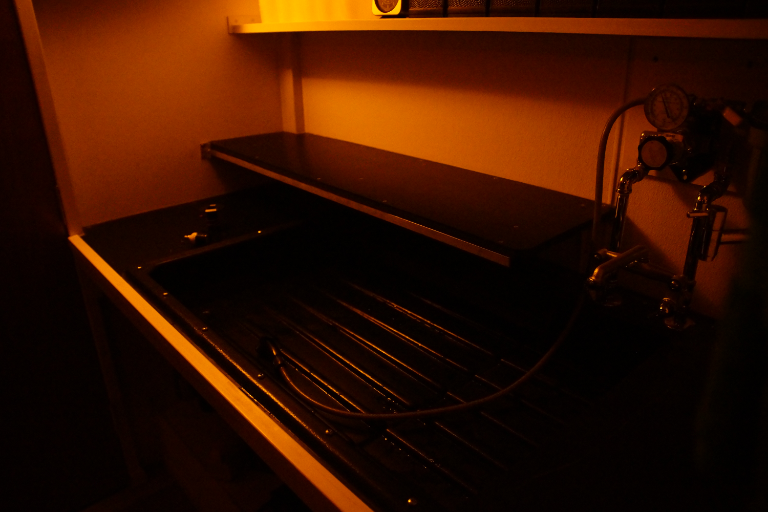 This is my mini darkroom in my motorhome conversion. It does function. The shower doubles as the film drying cabinet.