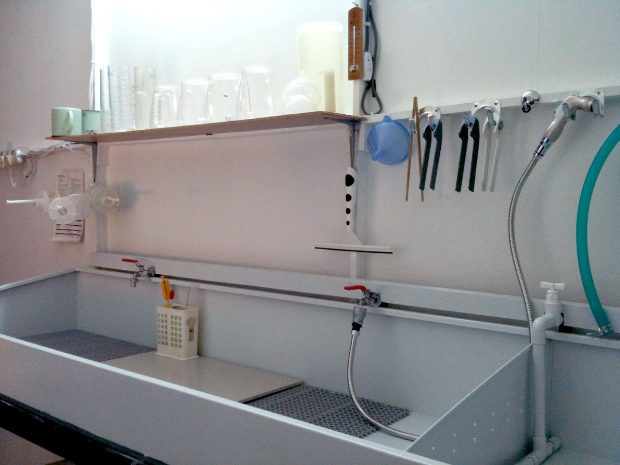 a peak at the dry side and a detail of a remnant of the room's first purpose: