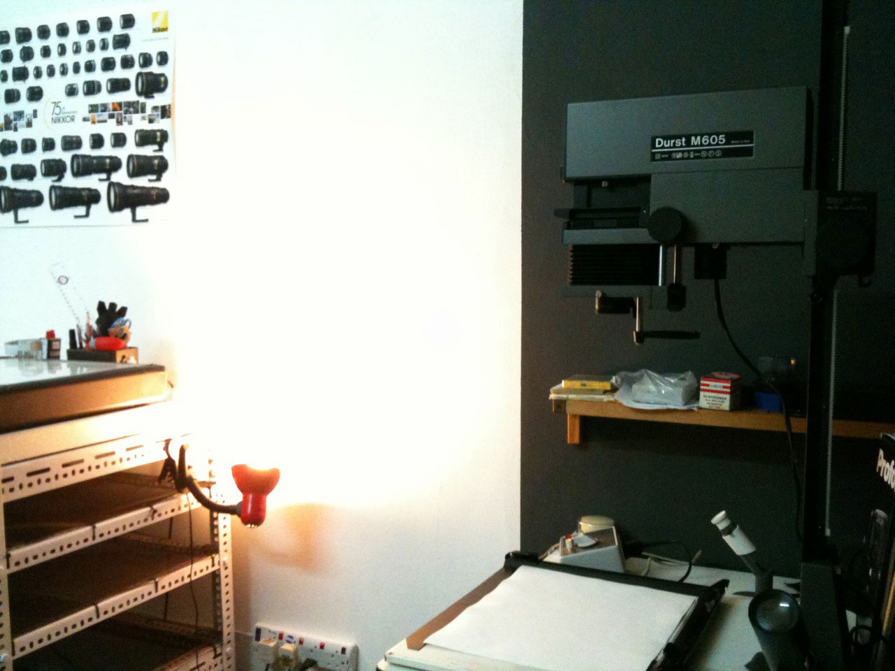 Although the total refurb cost a fair bit virtually everything in there was donated for free. The enlargers, lightbox, trays etc came from a local college and other photographers who, sadly, would have thrown them out. Even the metal sink and worktops were free!