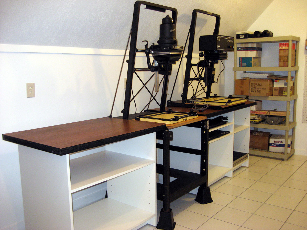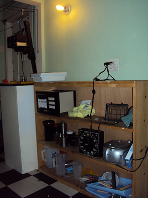 Although the total refurb cost a fair bit virtually everything in there was donated for free. The enlargers, lightbox, trays etc came from a local college and other photographers who, sadly, would have thrown them out. Even the metal sink and worktops were free!