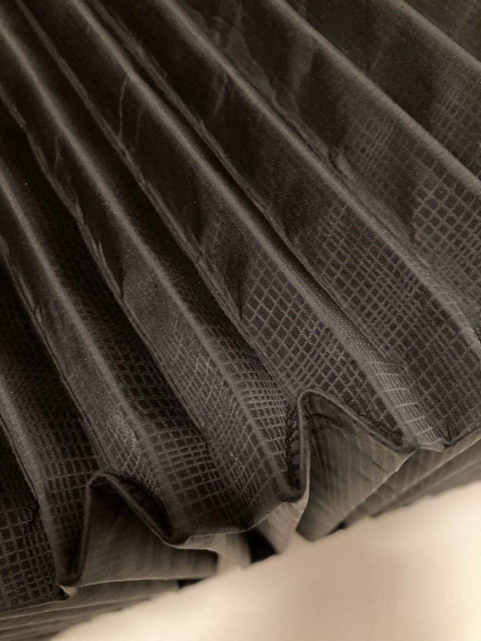 Synthetic material Nylon I believe, lined with another mat black fabric inside.