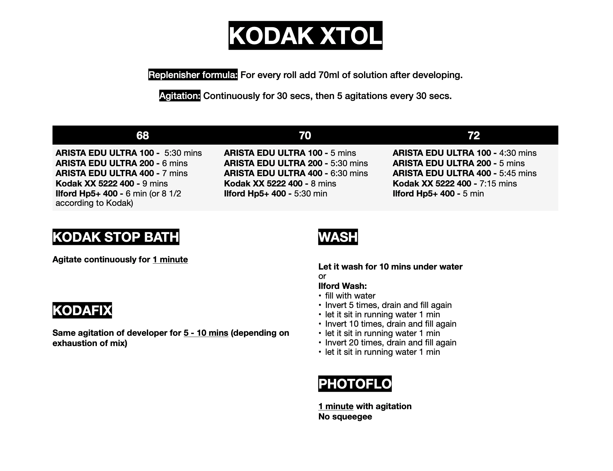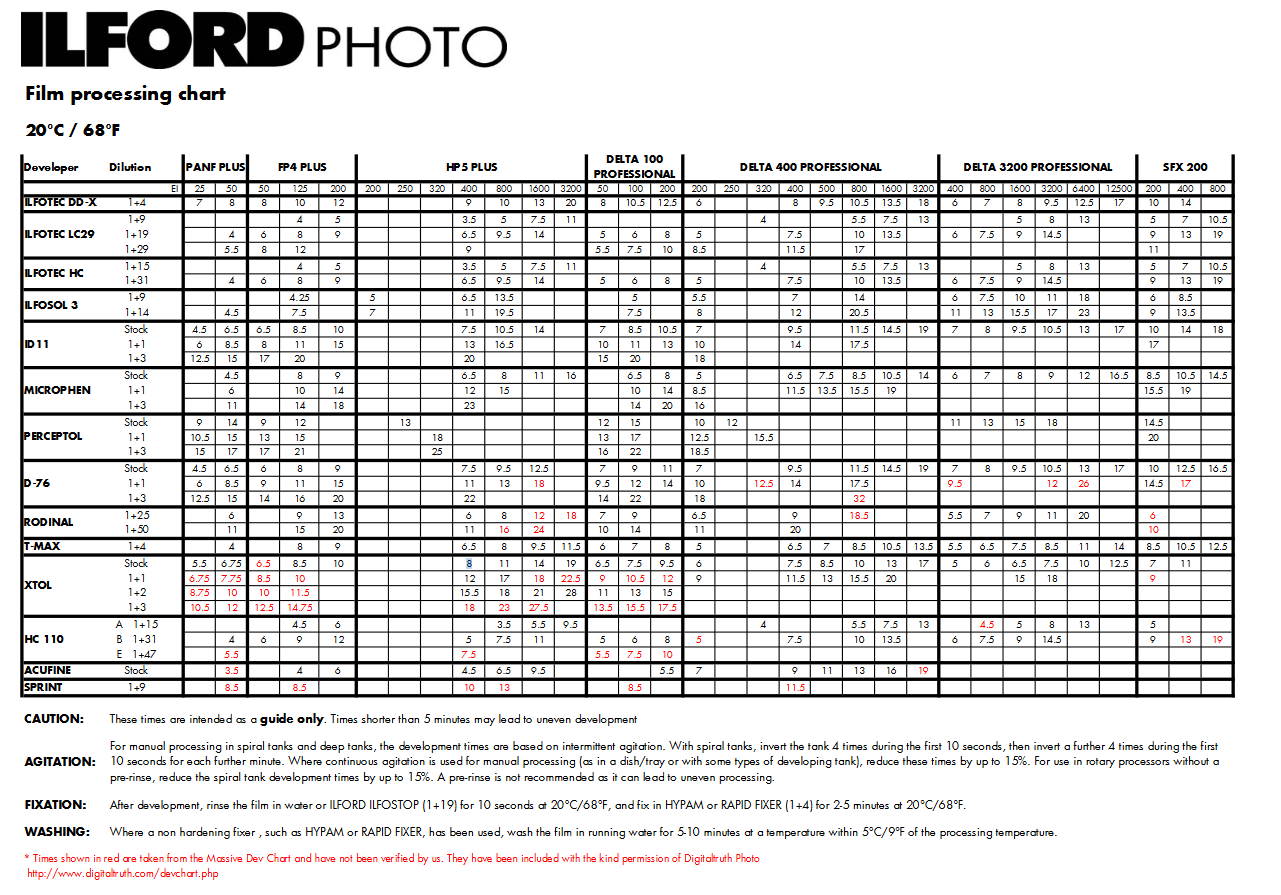 At 68 degrees Kodak says to develop the film for 8 1/2 minutes while MDC/Ilford says 6 mins. I fear that difference is pretty significant.