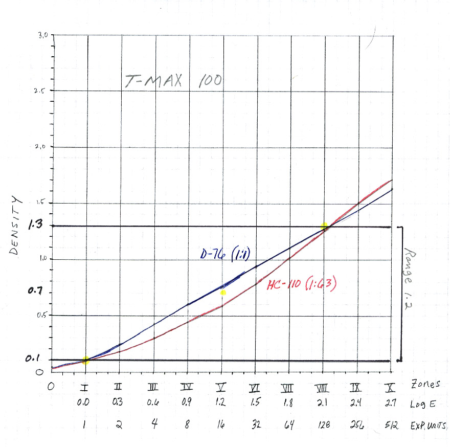 So, in this example, with the family of TMX and D-76 1:1 curves, each development time creates the same negative density range for optimum printing. The whole purpose of calibrating with the ZS is to be able to expose various subject brightness ranges either high, normal, or low SBR's, and still be able to develop the negative to the same density range-----this optimizes the negative for printing. Of course, the ZS facilitates visualizing the individual zones and their associated print tonalities, which is the real advantage of this system.