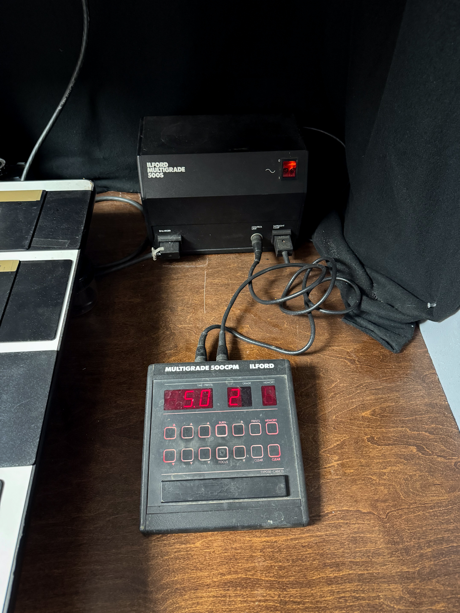 Ilford 500H multigrade lamp house attached. Includes the 500CPM controller, 500S power supply and foot switch.