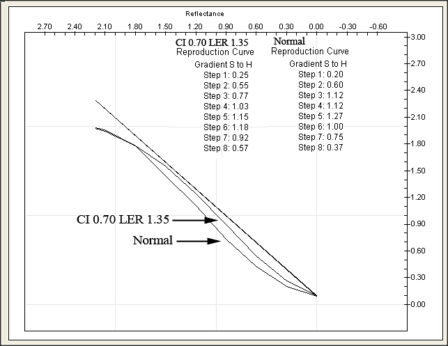 To confirm my understanding, your graph shows about .4 to 1.4 of film density is used to give .1 to 2.1 density in the print?