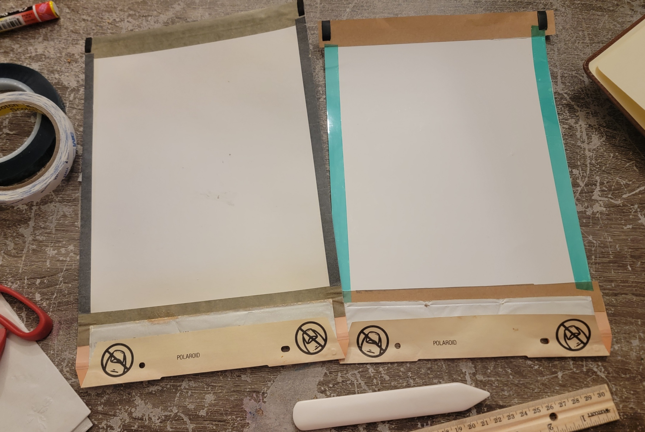 For the last couple of weeks I've been working very hard on analogues of Polaroid's coaterless chemistry, using cellulose acetate instead of silica sol as a substrate.