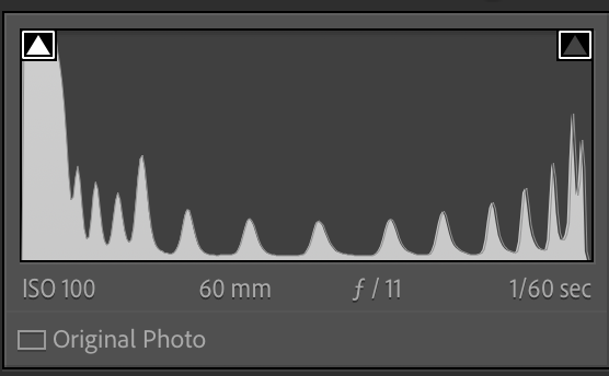 Given that online the Nikon Z5 has a reported 14+ stops of dynamic range, I thought that this would result in plenty of wiggle room when scanning the image (all of the 21 steps compressed into the middle of the histogram, with 2 stops-ish of data on top and bottom)