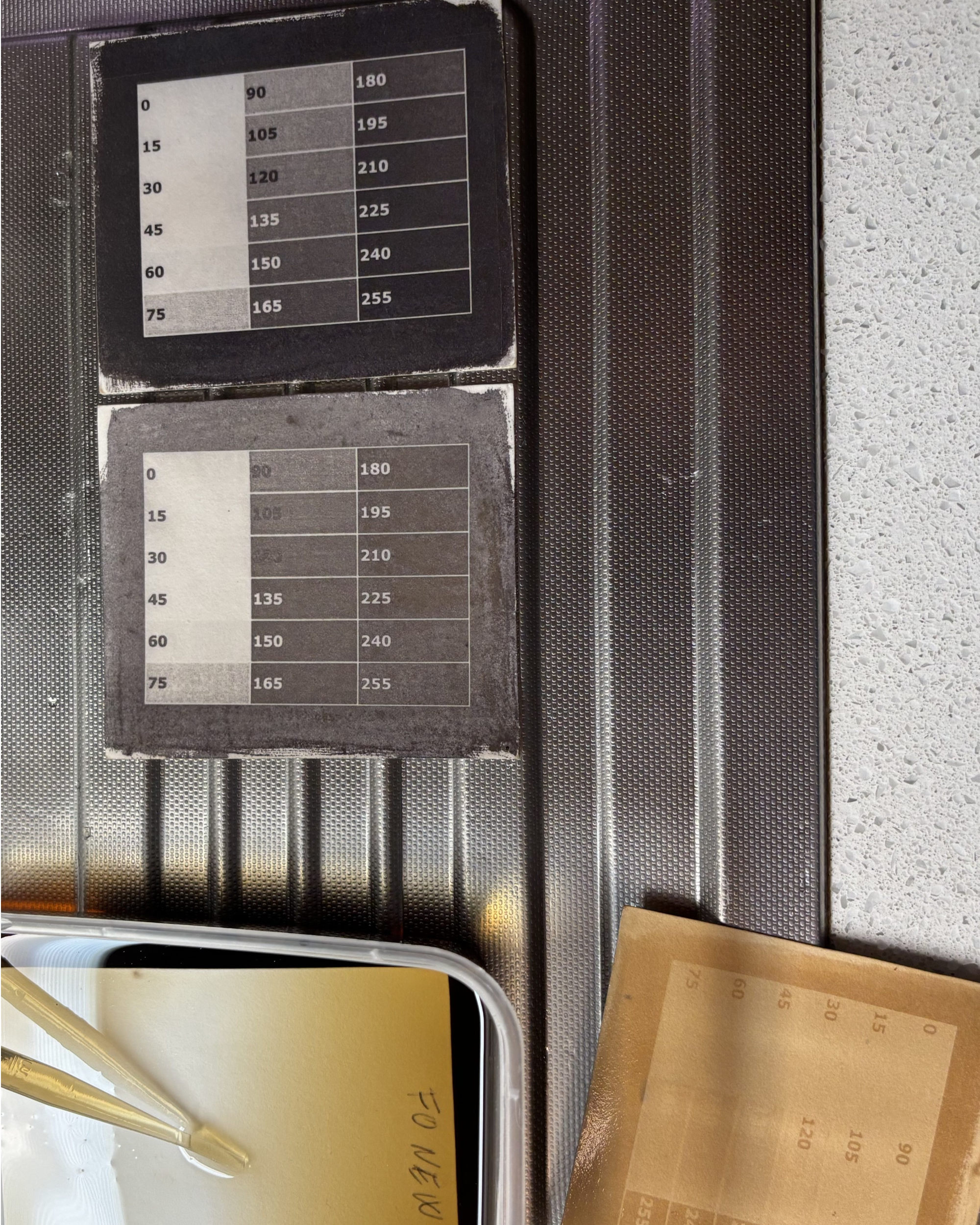 2. Expose the paper under negative and UV light [UV light produces insoluble Iron(II) oxalate]