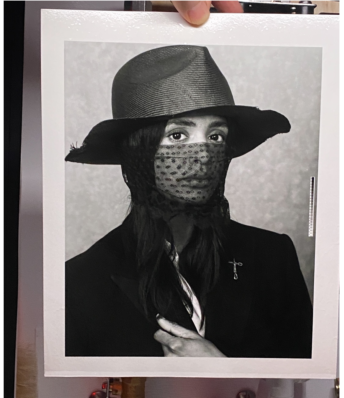 Made the first print, exposure time was long ‘cos I half-sized the image rather than refocus the enlarger down to 8x10. However it printed fine with no filter, center correction did overcorrect a little in the highlights :wink: