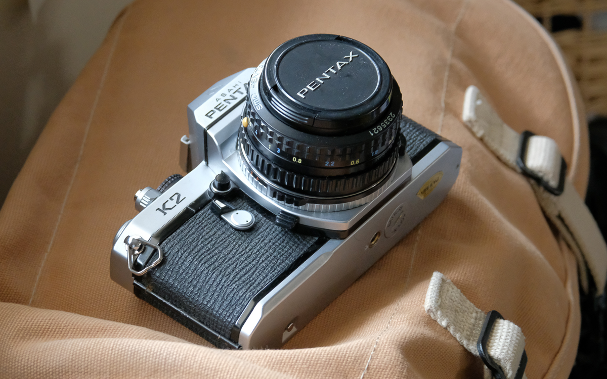 I had thought about getting a K series Pentax a while back, and when I realized recently that they were released in 1975, I decided I should go for it. This K2 has an early serial number, so from right around 1975. Not that it really matters, but I kind of like the idea. Here it is on my favorite Domke bag.