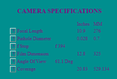And to start your build, while calculators will get you in the right area, make (or purchase) the pinhole FIRST, then measure its actual size, then reverse-engineer that into original camera idea, so adjustments are made after the pinhole itself is on hand. This would be a required step before wave length were to be tinkered with, but again ... there is no need for either. Three is no agreement in science on what makes pinhole imaging tick 100% and as such there are only approximations and compromises, and every box made makes the final result different.