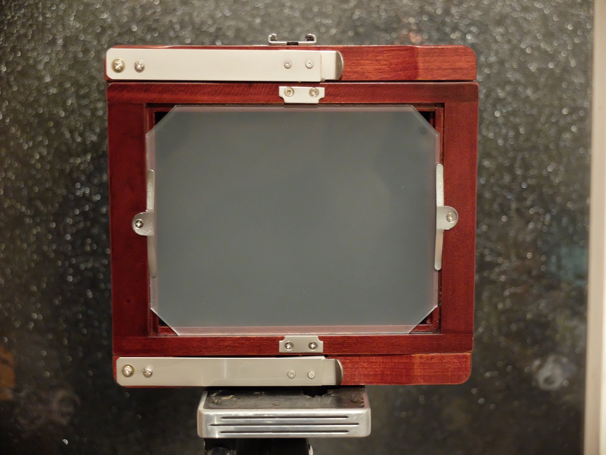 With a dark cloth and the 2mm hole, the ground glass image is still bright enough to see what will be on the final image. However, you must use the smaller hole to take photos, otherwise the photos will be much too soft and dark at the edges of the image.