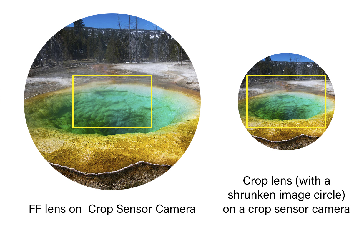 (Emphasis mine)One argument is that crop lenses are designed to produce a shrunken image circle that fit the size of the crop sensor. [...] This reasoning makes sense to me.