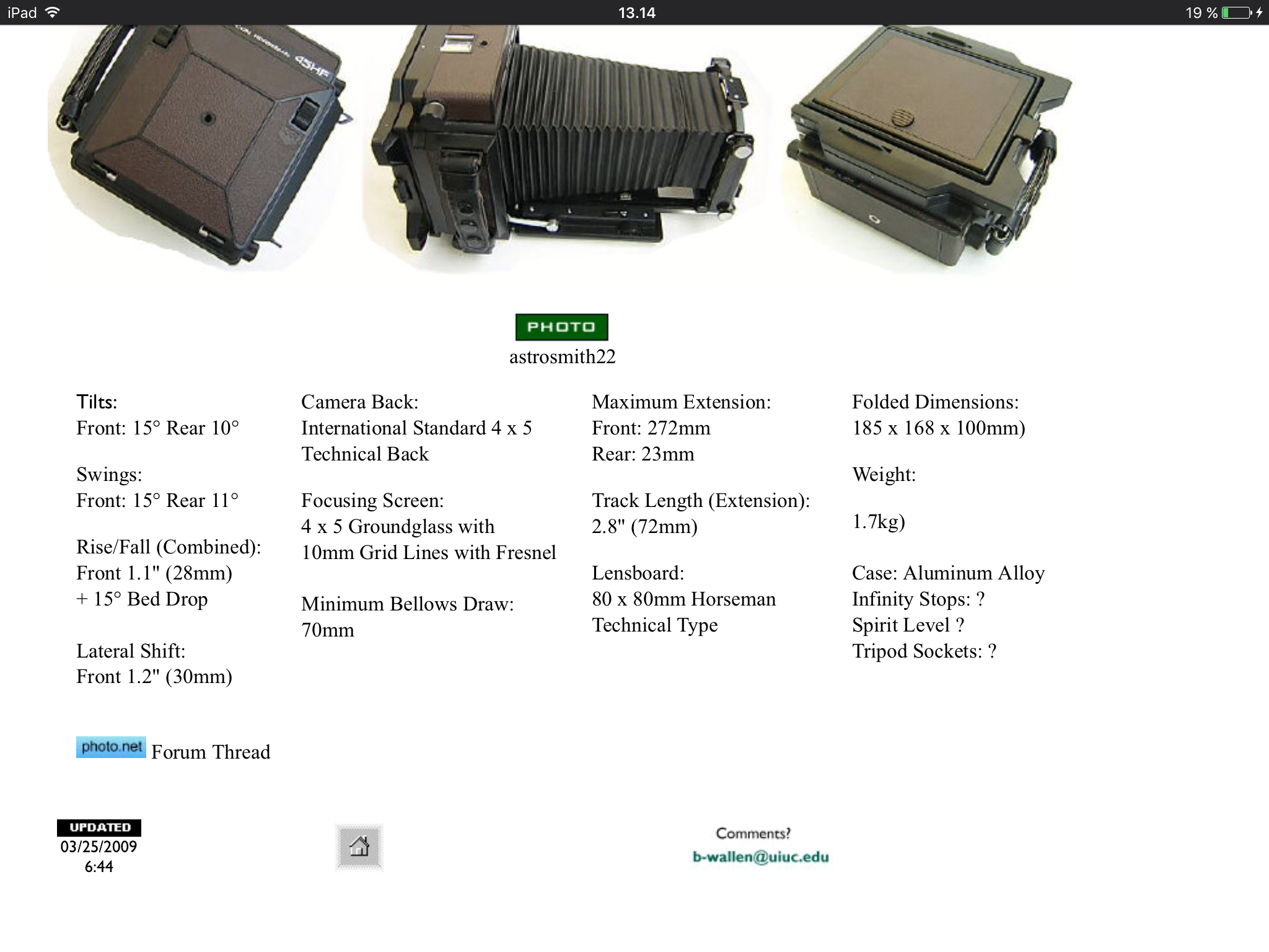 made as a Technika, but without the same bellows range, weight, or price. They're nice. I looked at Horseman folders, but they're just too limited for