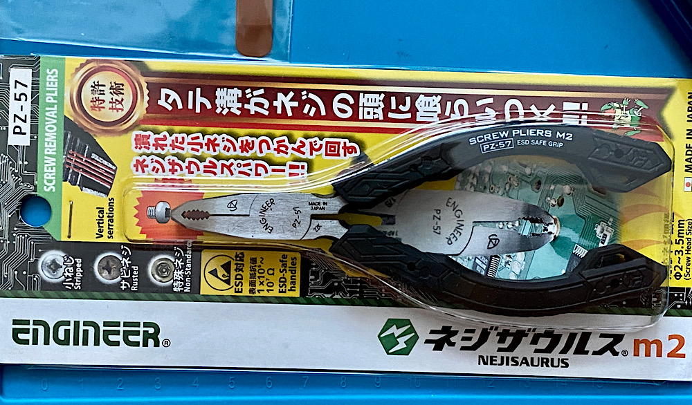 The remaining screw residue can be removed with these pliers, the Nejisaurus: