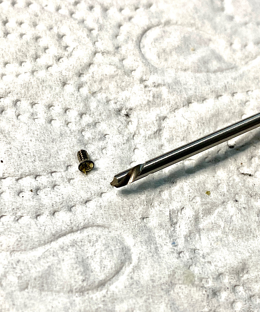 The last option that works well for me is the Dremel with a tungsten carbide tip for milling out screw heads.