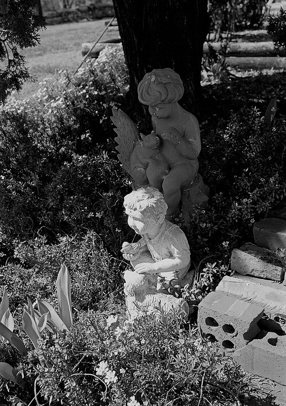 If you think this is high contrast you should see the same shots with Tri-X and HC-110 Dil H. Looking back over the negatives, I think they could stand a slight reduction in developing time...maybe half a minute or so. that could reduce the perceived contrast as well.