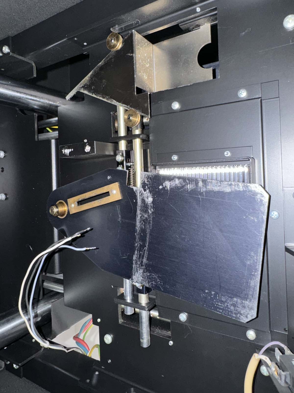 The shutter is just an off center pin on the motor, that fits into a slot on a piece of metal, that is mounted on a hinge.