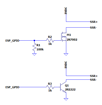 We figured out that we had to use some mosfets in order to control the ssr relay. It seems like the esp can not output enough amps to trigger the relay.