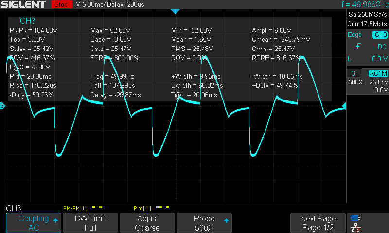 At the moment I think that the filter unit of the regulator pair do not stabilize well so the display goes crazy with measuring Vrms.