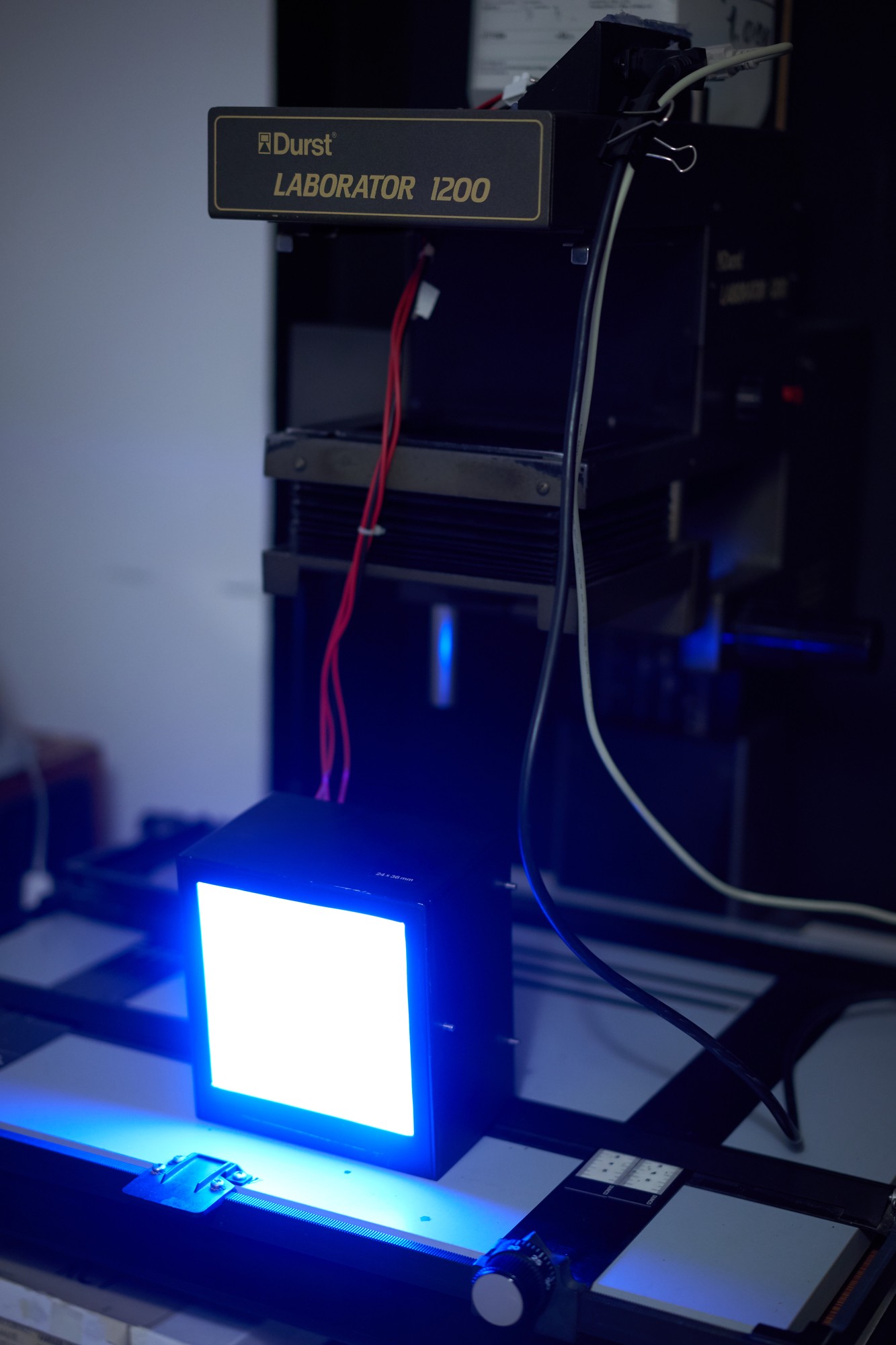 All in all, I've quite enjoyed working with the LED light source. Along with the custom built timer, there is simply no need for any filters. Press the focus button and only the red LEDs are on. Press another button and everything turns on, so you can focus easily. It is so bright that I never needed to open the aperture while working. The exposure times are kept separately for each of the high and low contrast channels and we've even come up with a method to do both exposures automatically, so all that is needed to make the final exposure after the initial test strips is a single button press.