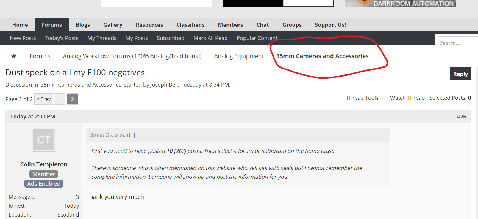 Try clicking on the indicated "35mm cameras and accessories" on the top of the page - see here - and then see what appears.