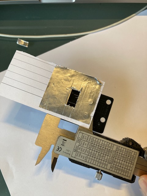 After measuring the error in a very rough and ready way with a hole in cardboard and some calipers (see photos - very rough and ready but I'll set up a proper rig soon!) I think the wide light source is causing a fair amount of error that throws off the faster shutter speed measurements. I'd hoped to avoid using lasers because they're a pain to get aligned each time and you need to build a rig to make it all work, and I'd seen that professional shutter testers just used a diffuse light source with holes for the sensors so I thought a thin hole in a 1.6mm PCB would be enough to reduce the error.