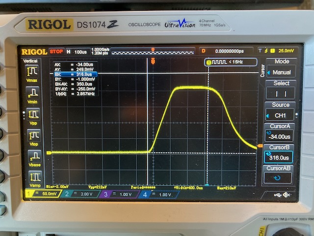 At 1/4000 speed it should have been 250us, though I had a suspicion this camera was a little slow at this speed. The phototransistor measured 350us and the IS485 measured 470us which is as expected because of the sensor width (somewhere between 0.7mm and 1.0mm)