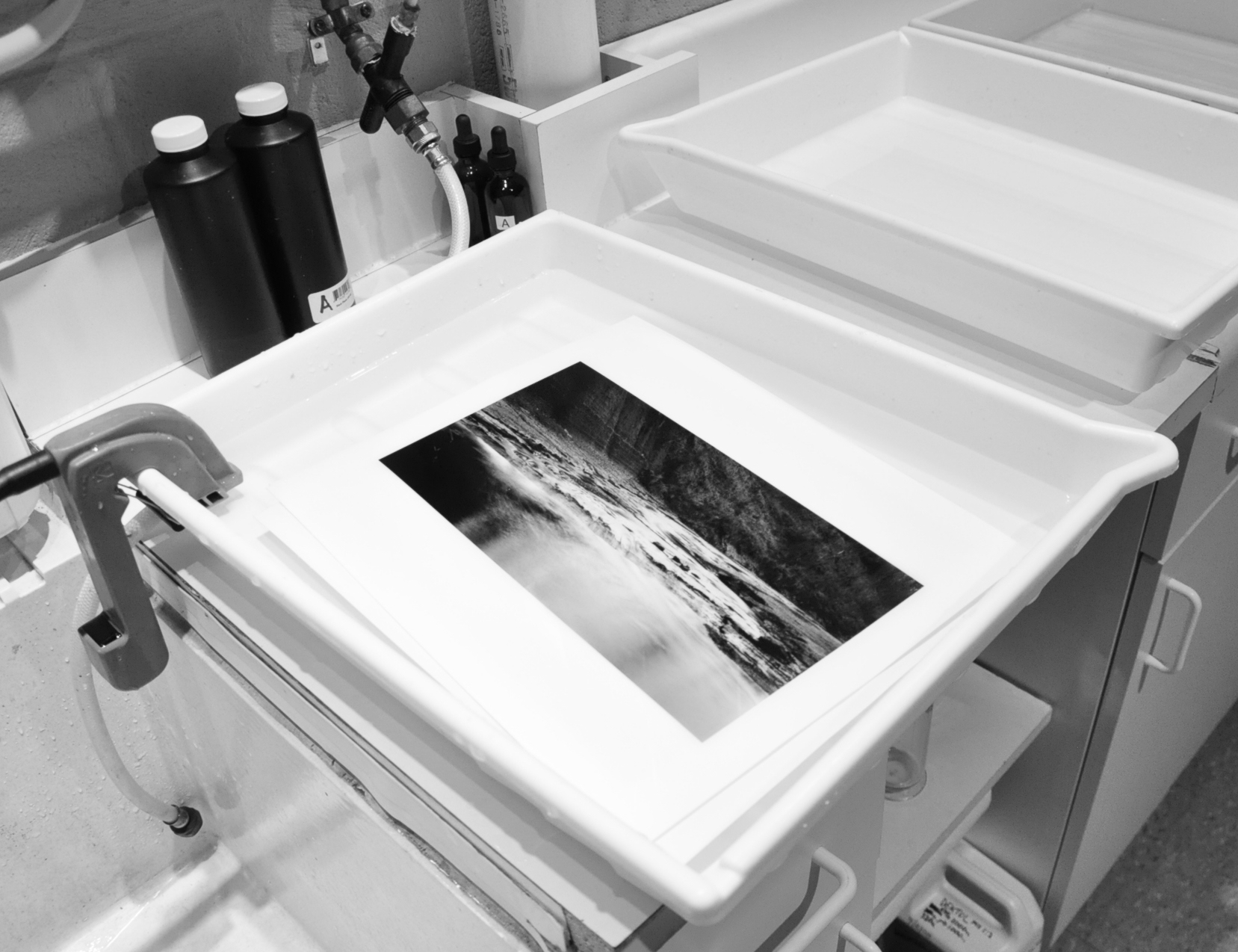 Ralph Lambrecht, on pages 472-476 of his excellent book, Way Beyond Monochrome (2nd ed) tells us how to make a test-strip printer out of .25-inch-thick plastic sheets that are hinged. My printer above is a simplified version of his device.