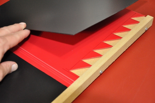 Hold the device on the easel with hobby magnets as shown above. If your easel lacks a steel surface, make the bottom larger so you can hold it down with weights instead of magnets.