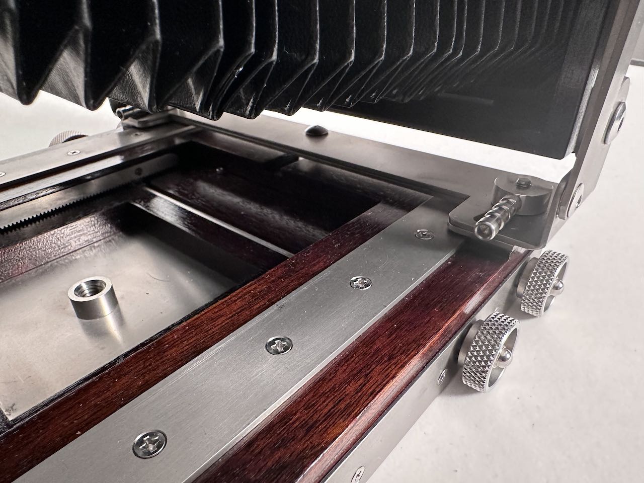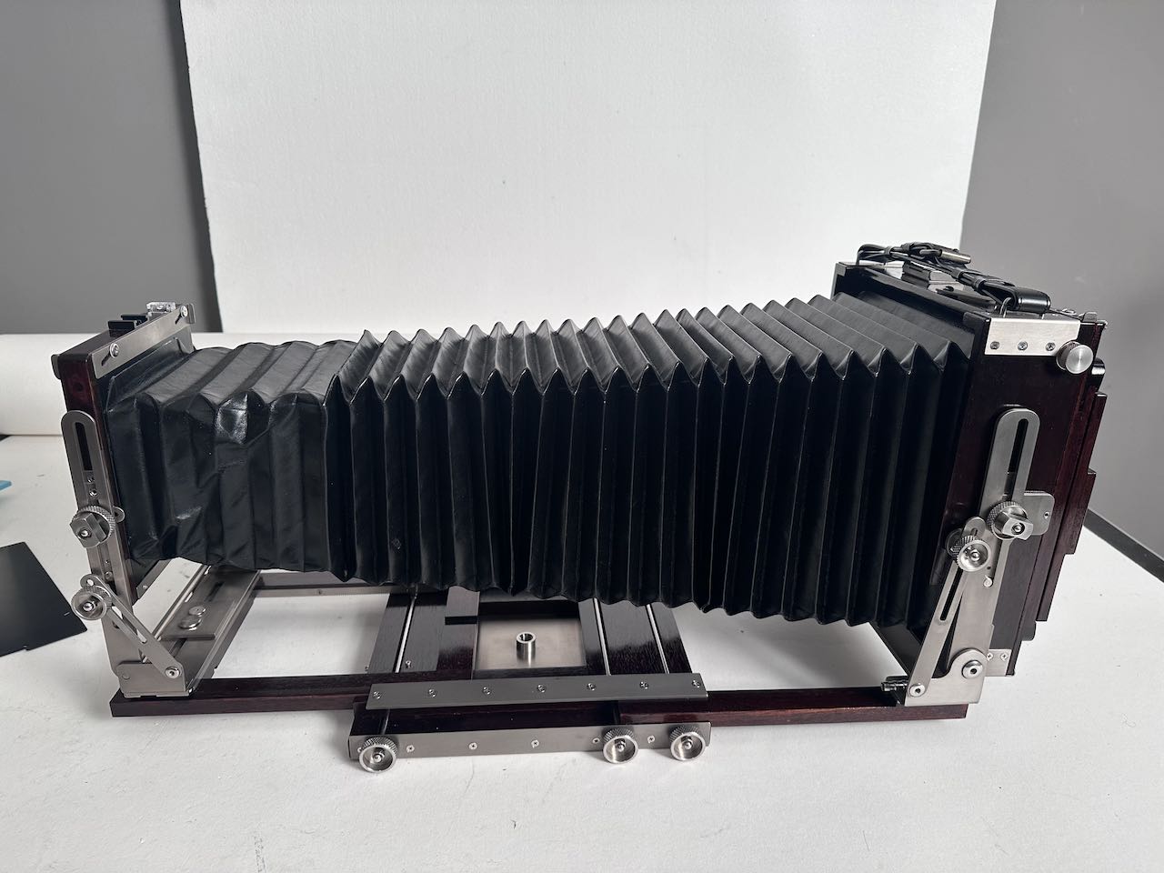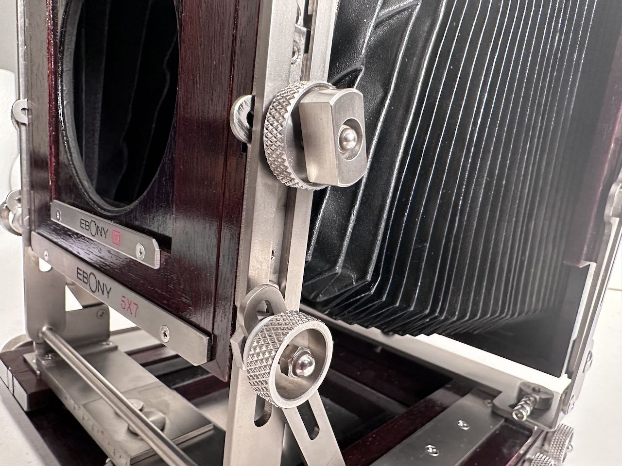 Selling my Ebony SV57. One of the latest produced before Ebony ceased production. The camera is in excellent, mint condition, only a couple of screws show signs of use. Included is an Ebony Sinar to Linhof adapter and an extra standard bellows. Both bellows are supple and light tight. The ground glass is very clean, with protector. Ebony box.
