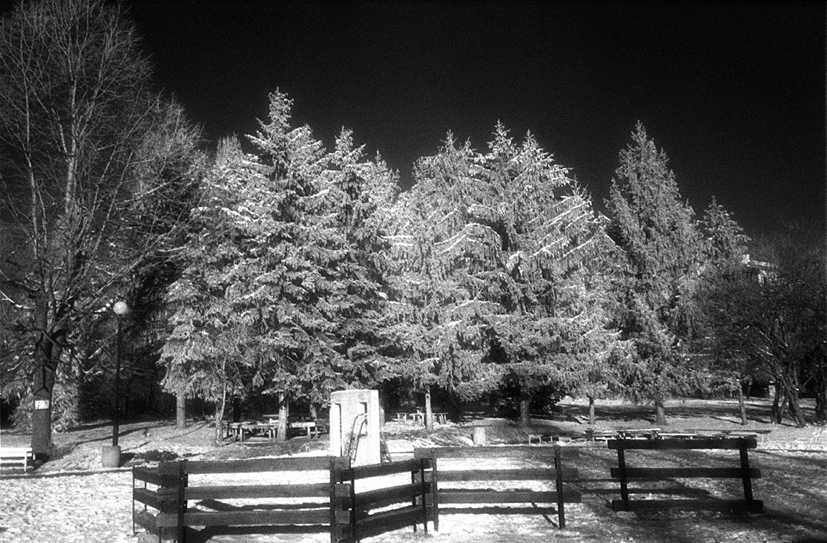 I am attaching a few shots from today, in the snow. Zorki 1, Jupiter 12, Heliopan RG715, handheld, exposure between 1 and 2 seconds
