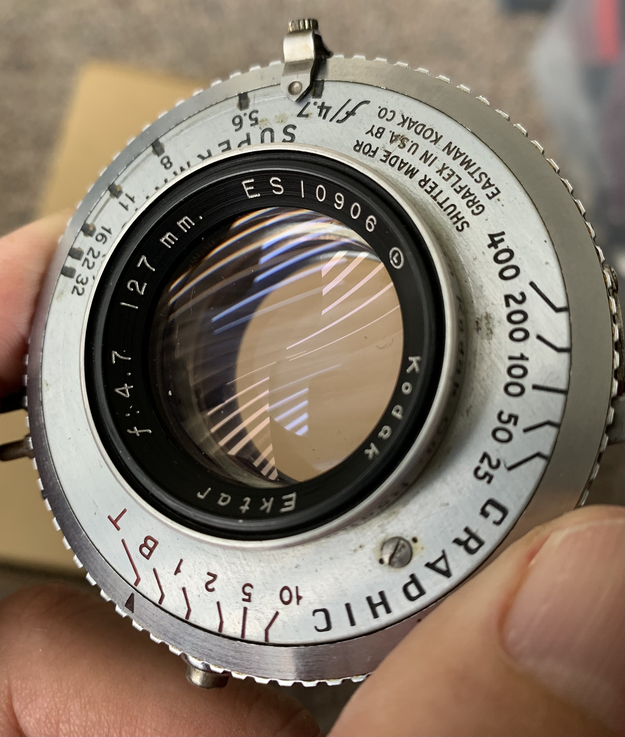 The glass is clean and clear and the shutter sounds accurate though I didn’t have it tested. Includes the mounting ring. I bought it from KEH thinking I might adapt it for Hasselblad but never got around to it. I would have sold it earlier but the glass is so nice.