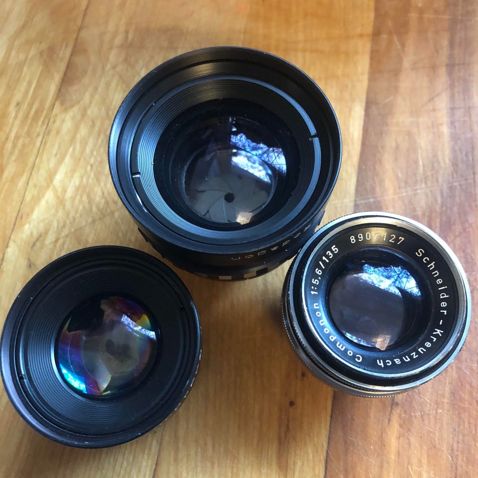 The Rodenstock 150 f/5.6 and Schneider 135 f/5.6 both look exceptional. The Rodenstock 105mm f/5.6 has what I guess is separation maybe on the front element? Not sure if it impacts image quality. Tried to show it in one of the pics in the center of the lens.