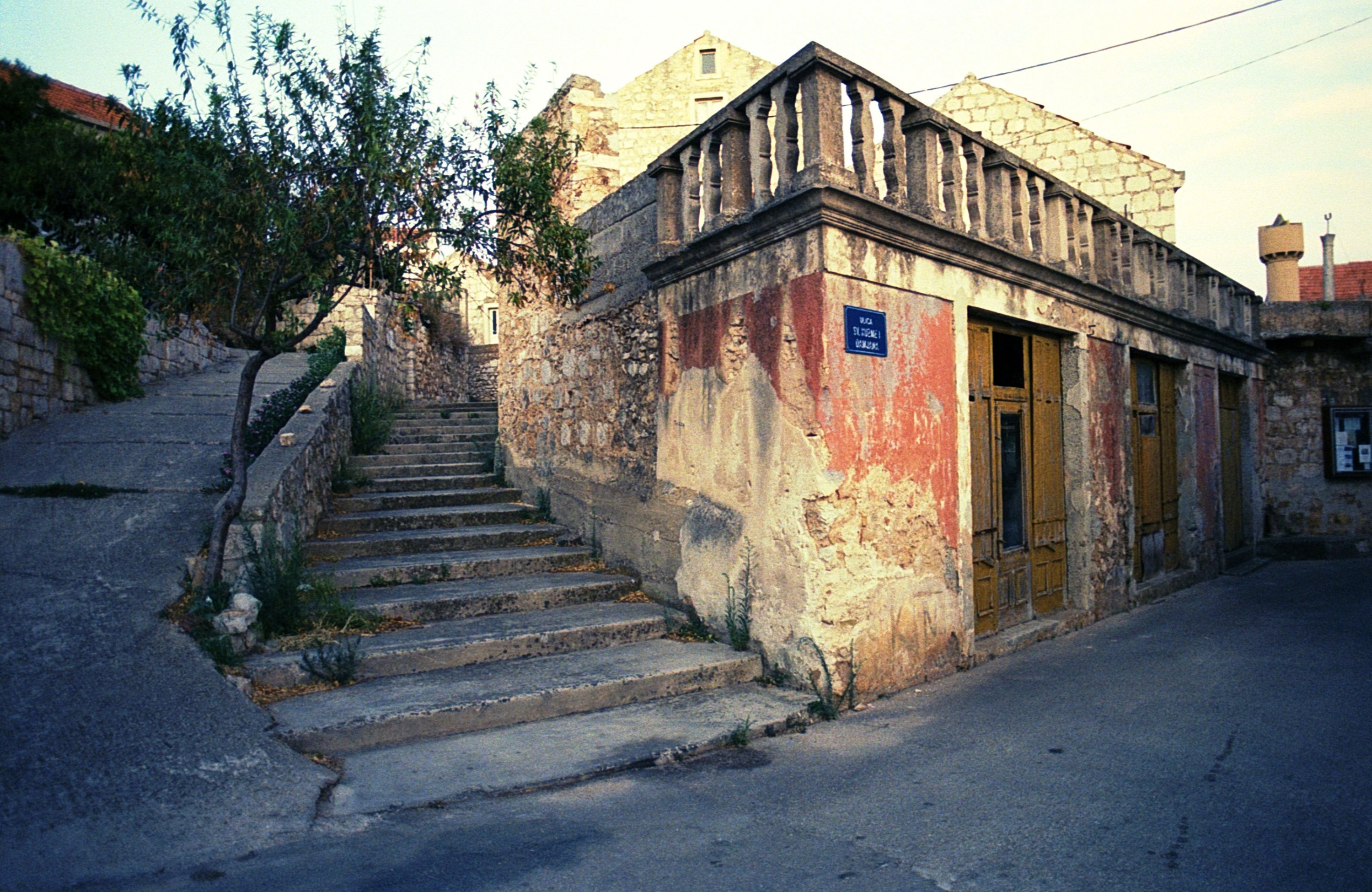 Yes I did hand hold the camera. Shutter speeds were fairly slow (I think around 1/30 - so not something that should really be done hand held) since it was almost night time. They were both taken on Kodak Ultramax 400 so not exactly the most high end of films either.