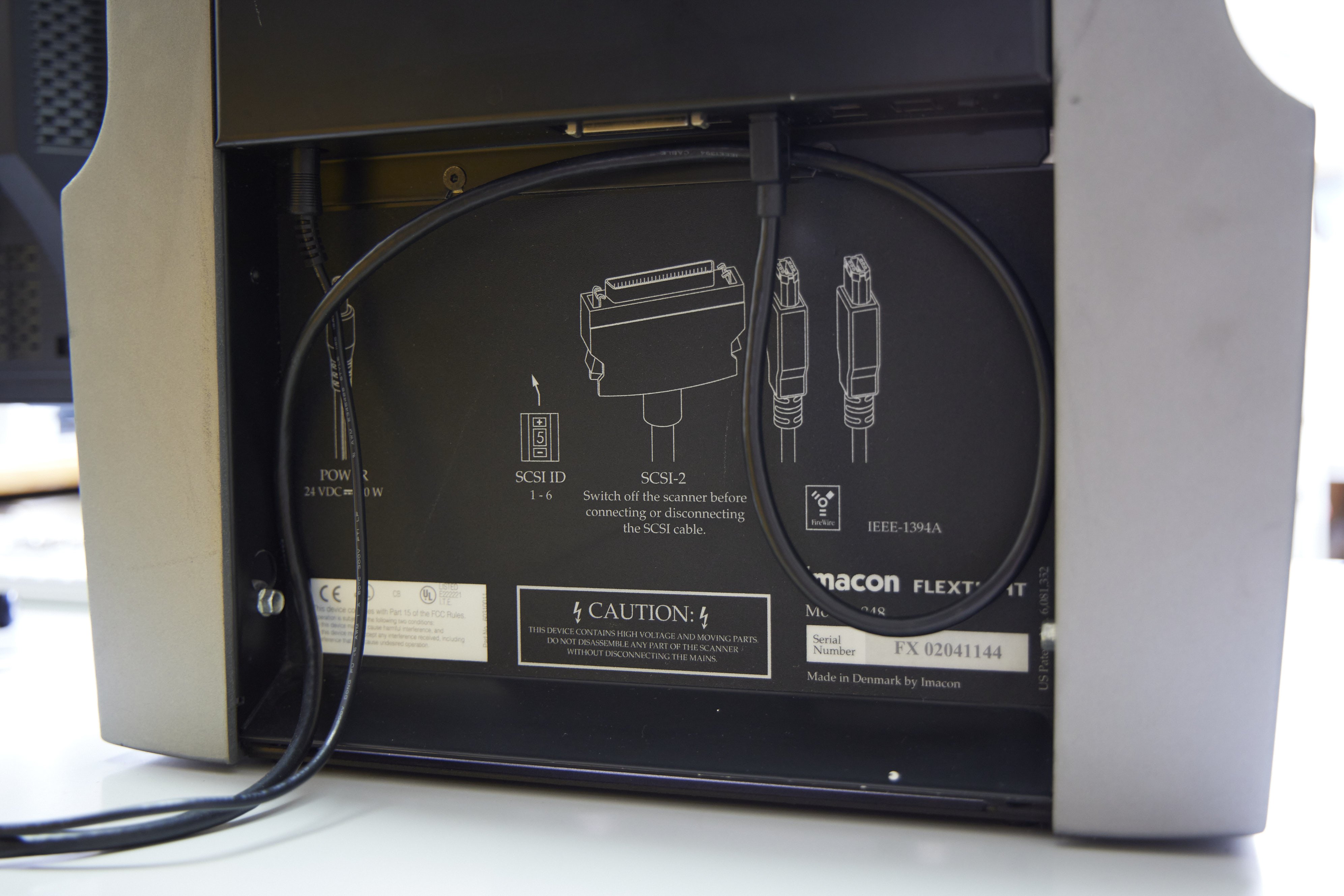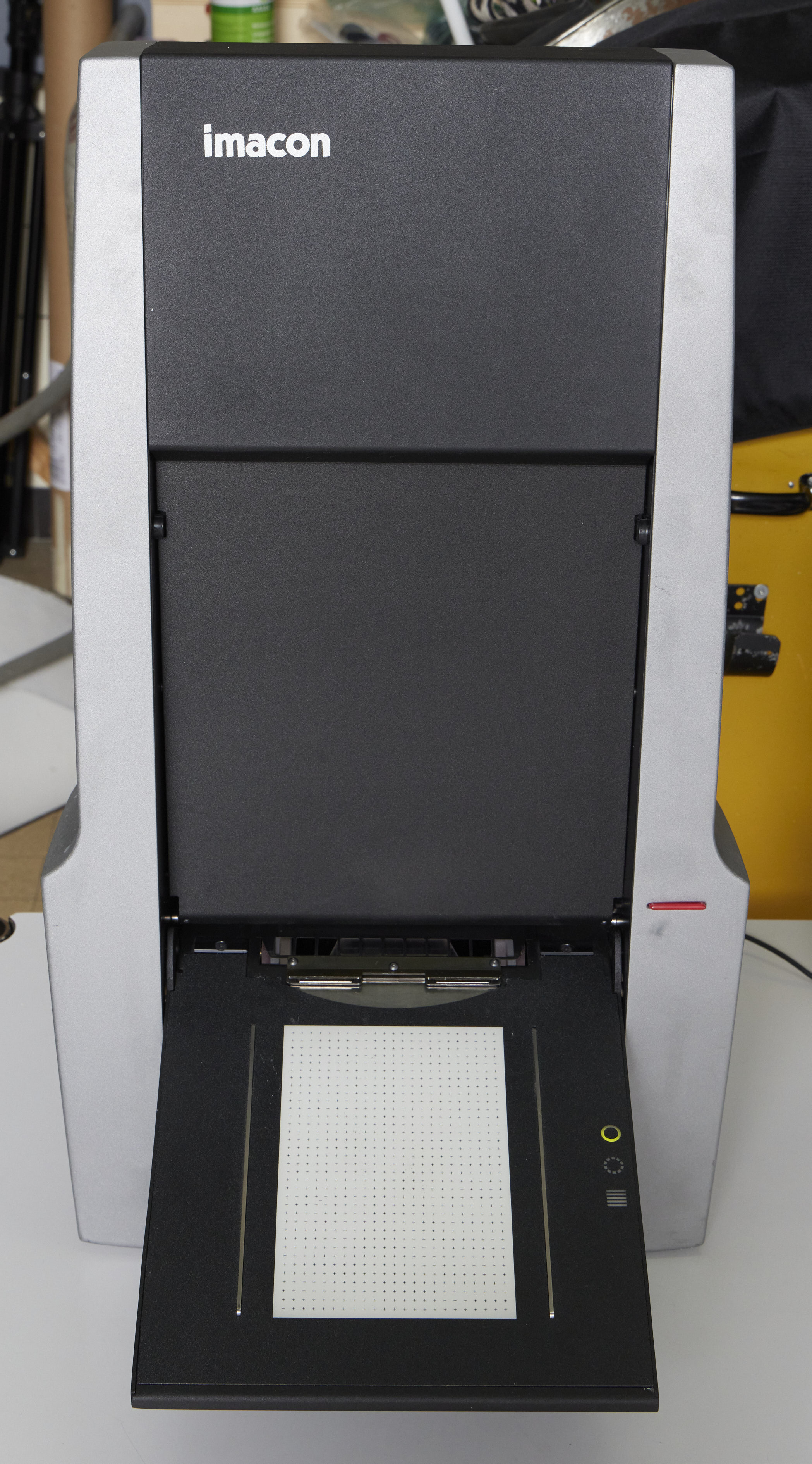 - Imacon 848 scanner with firewire 400 cable, power unit + dust cover (black generic)