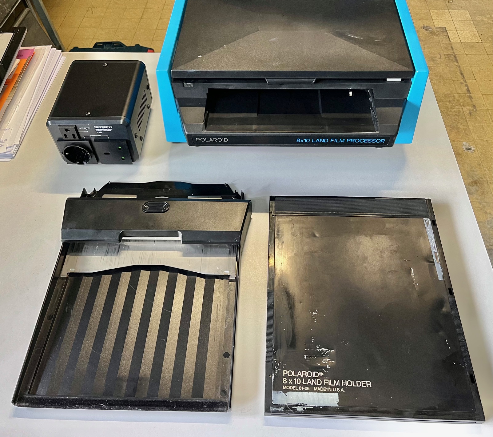with 81-09 loading tray and 81-06 film holder. The film holder has tape residue.