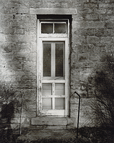 Two negatives were selected for the trials (scans below). I had printed the Cola sign before on grade 3 Azo so its print parameters were known. It was also a good candidate because it contains a full range of tones from black to white, and it has good subject surface textures (bricks, mortar, concrete, glass windows). Thus, it would be the primary trial negative. I also made several Azo prints of it in this printing session. The other neg, Snokomo door, had not been printed on Azo before. My gameplan with it was to get a fine Azo print, make several of them, then try it on Ron's paper. Thus, for the two negatives, I established a reference print on Azo grade 3, ones that I would display in a gallery or sell, then proceeded to try each one with Ron's paper using both emulsion grades and the three paper bases.