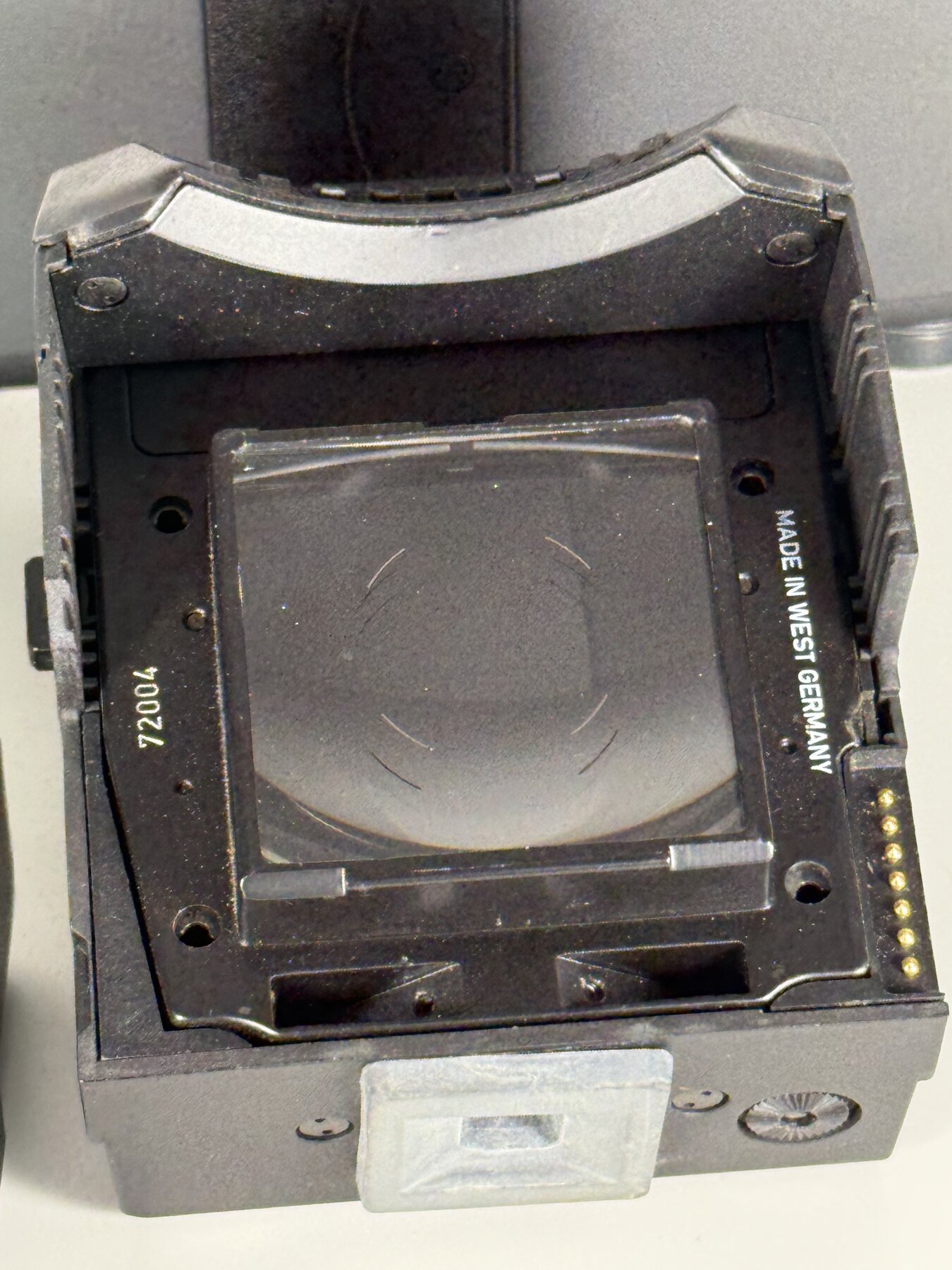The Prism Finder is in good overall condition. There is a bit of dust caught under the prism itself. However, I primarily use the WLF and haven't bothered to have the Prism Finder cleaned. There are no scratches or marks on the prism that I can see (other than the dust). The light meter built into the Prism Finder has been tested with a battery. It appears to work exactly as it should. The photos that I took while testing it turned out well.