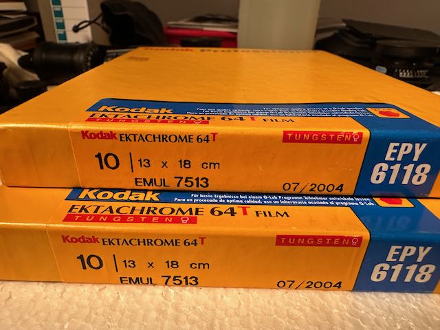 10- Kodak Ektachrome 64T 2x 10 sheets 4x5 exp. 2004 €30/box