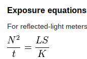You got what? I'm not trying to get anything. Its you trying to work out why some different formula or writing work out the same as the standard meter formula. I think the meter formula is the one to use becasue its what my actual meter uses, and yo and benskin seem to think the theory and writings are correct even though my meter doesn't use them. Well it does in that film speed is derived from it.