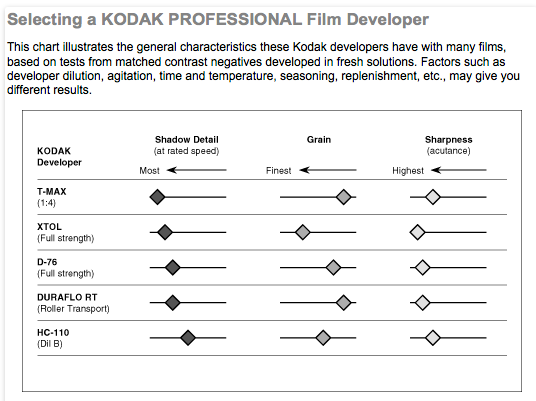 I agree Ian. I keep mentioning that chart myself! I just hate to keep re-mentioning it. These developers work well for all films. The user should determine which two of these (speed, grain or sharpness) they wish to emphasize in any particular exposure.