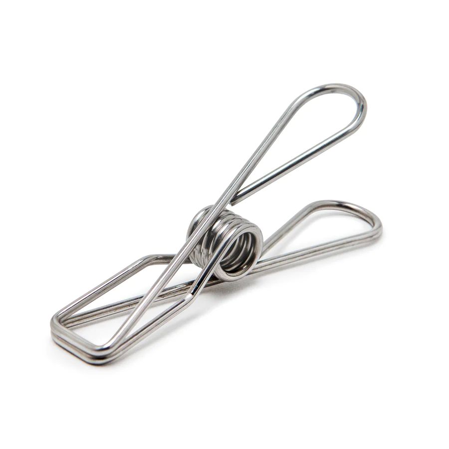 Clothespins are the best and by far the least expensive. No rust and very easy to replace if needed. I put a small hole in each one and hang them on a board with nails hammered through it. A quick makeshift solution I did in a hurry long ago and am still using. Not pretty but it works.