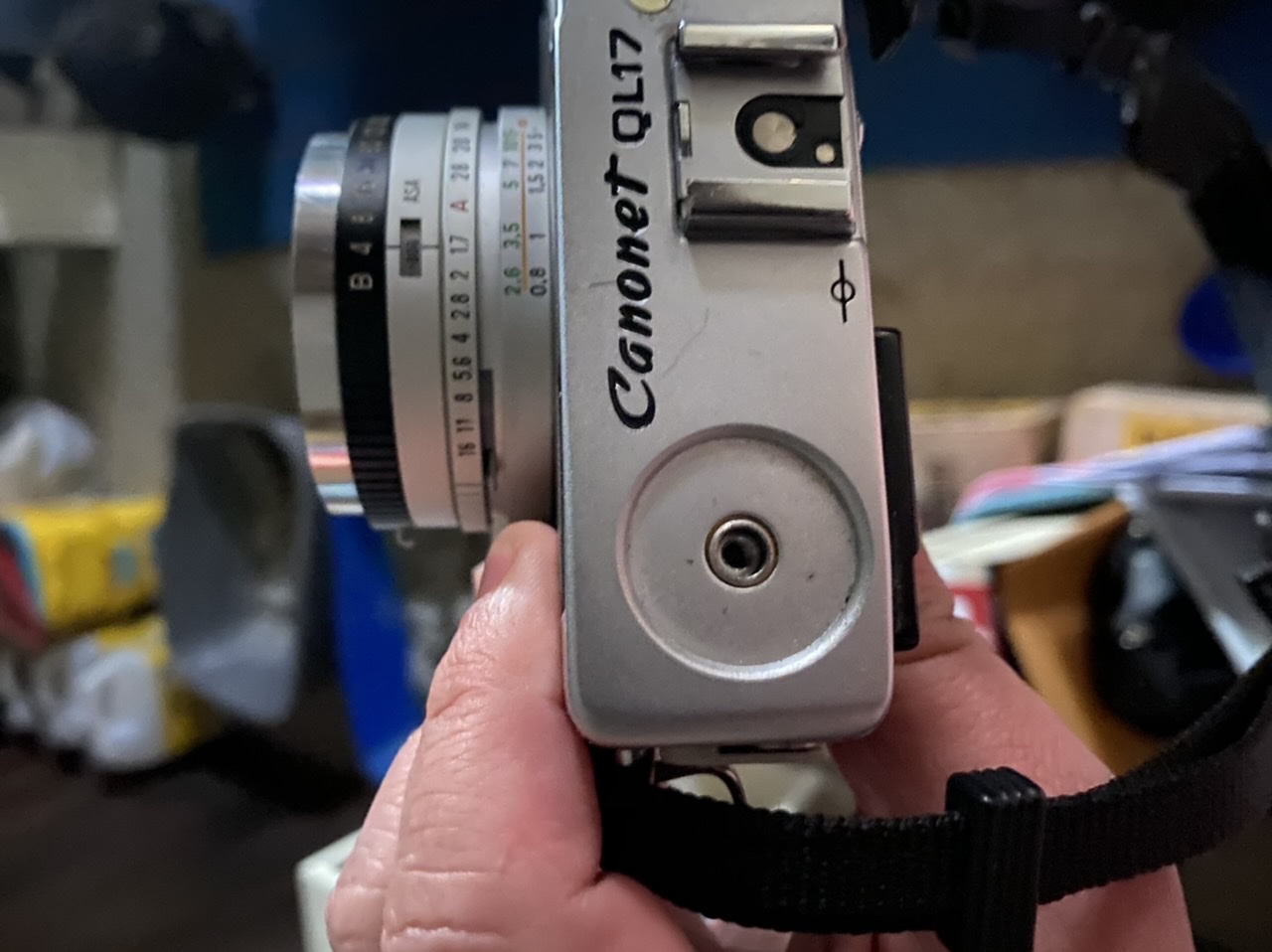 If for some reason that doesn't work, you will need to open and unload the camera inside a completely dark room or changing bag. You would need to open the back by pulling the rewind shaft up by inserting a screwdriver or pick into the shaft. Then you can rewind the film into the cassette by hand (again, push the rewind button first). With the film back in the cassette, you can turn on the lights.